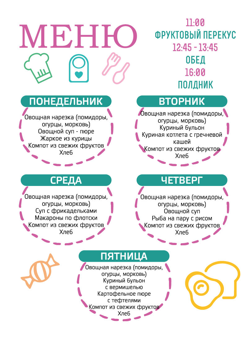 Наше полезное, питательное и вкусное меню ежедневно готовится на месте нашим профессиональным шеф-поваром. Наше меню, разработанное специально с учетом диетических потребностей детей и приготовленное каждый день с любовью, пользуется огромной популярностью у всех наших учеников… и сотрудников!