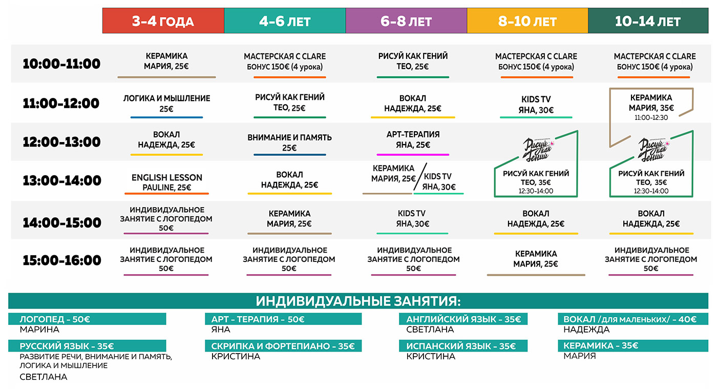 Школа выходного дня El Campanario — это комплексные обучающие и развивающие занятия для детей от 2 до 16 лет, которые проводятся по субботам. Наш проект выходного дня создан для того, чтобы дети смогли увлекательно и с пользой провести выходные, а родители — заняться своими делами или даже немного отдохнуть и отвлечься от суеты будней.